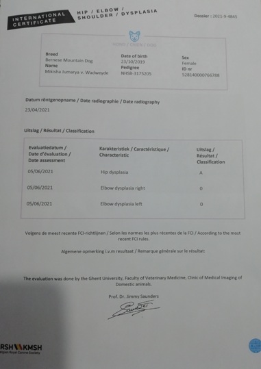 Berntiers opus one HD A ED 0/0 Ch: Finland. Eymy Z Ochoze HD A ED 0/0 Ch: Slovakije. Diamonds for ever de la vallee de L'enchanteur HD A ED 0/0 Elodie evaron v't Zeebriesje HD B ED 0/0 Ch: Luxemburg. |